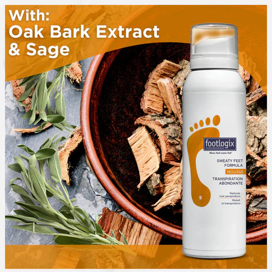 Footlogix® Sweaty Feet Formula is specially designed to tackle excessive perspiration with advanced Dermal Infusion Technology®. This innovative formula combines the astringent properties of Oak Bark and the natural antimicrobial benefits of Sage to help manage sweaty feet effectively. Ideal for athletes, individuals with excessively sweaty feet, or those wearing non-breathable footwear, this formula helps reduce perspiration while supporting the skin's texture and health.